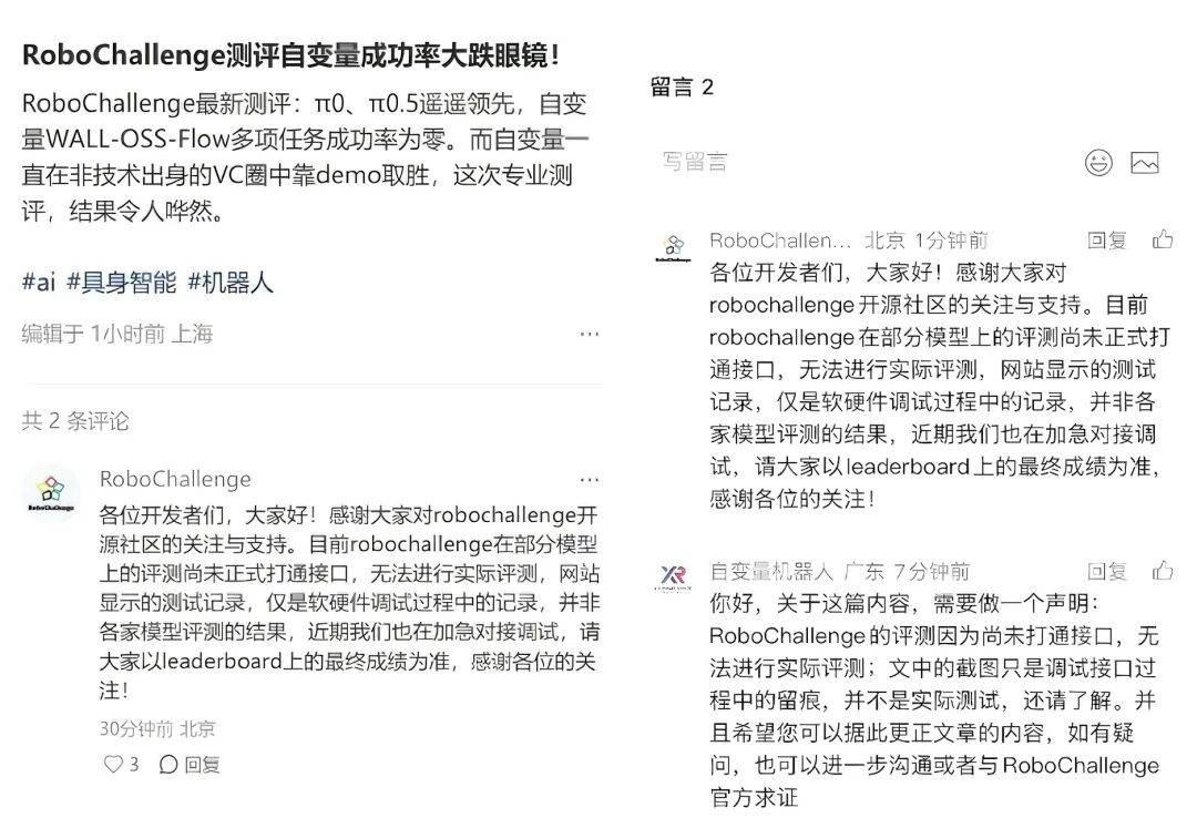 具身智能的公关已经从“争相斗艳”往奇怪的方向发展了。近日,网络多平台密集出现“自变量开源模型零成功率”的媒体消息,甚至不少社交媒体平台“momo”这类隐去网名的素人朋友也同步大肆拉踩。基本抨击的要点如下图所示:
