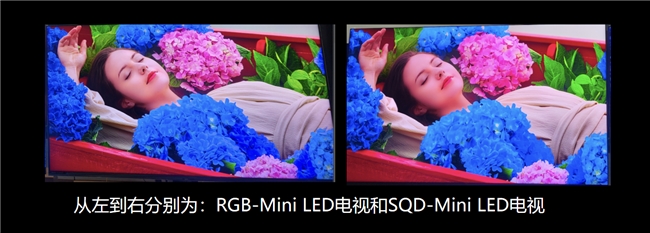 除了亮度,在色彩表现上,SQD-Mini LED不能独立控色,人物肤色明显串色发红,花朵颜色分离度差,糊成一团没有层次、立体感差。