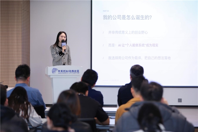 中关村AI北纬社区入驻创业者、月央科技创始人洪玥是北京大学校友,曾长期在科研机构与产业界从事算法研发与系统落地工作。她分享了自身从技术研发到单人创业的转型经历,独立完成了涵盖需求对接、实时通信、智能评估、任务路由、流程拆分、项目管理等核心功能的MVP开发,产品已进入小规模内测阶段,用以验证其在复杂需求解析、价值匹配与过程调度三个层面的系统性能。她的实践表明,在开放的技术平台与协同生态支持下,OPC模式具备快速验证、持续演进的产品化潜力。