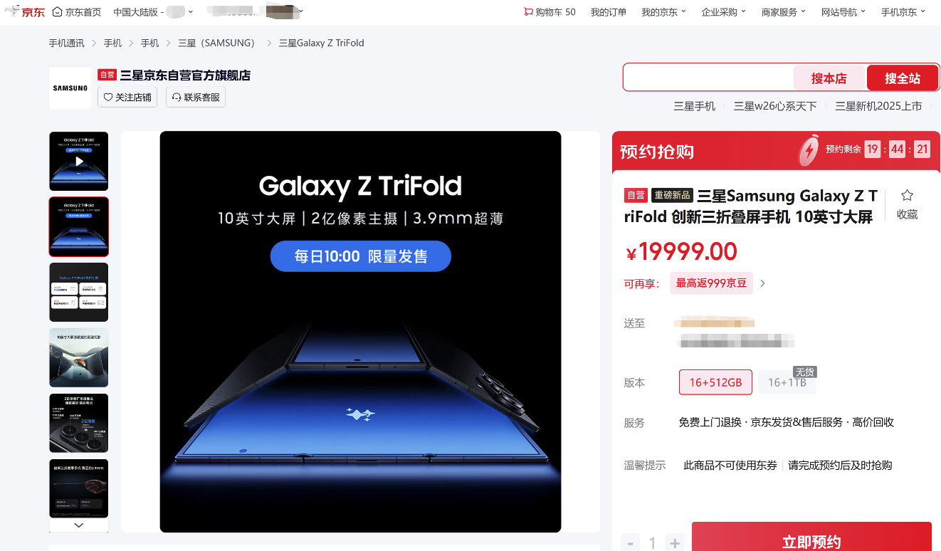 如果想要购入三星Galaxy Z TriFold,那就快来京东参与预售吧。