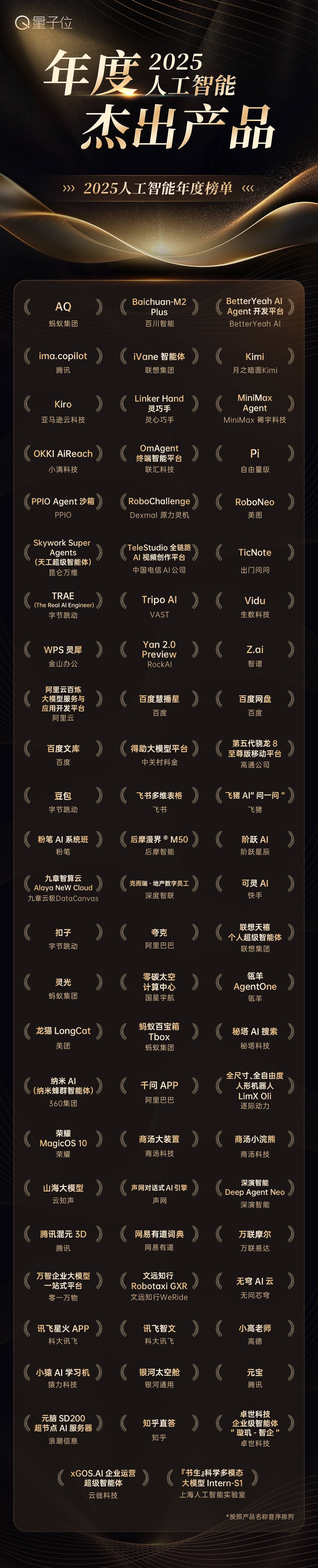 量子位MEET2026智能未来大会上,「2025人工智能年度榜单」正式揭晓。