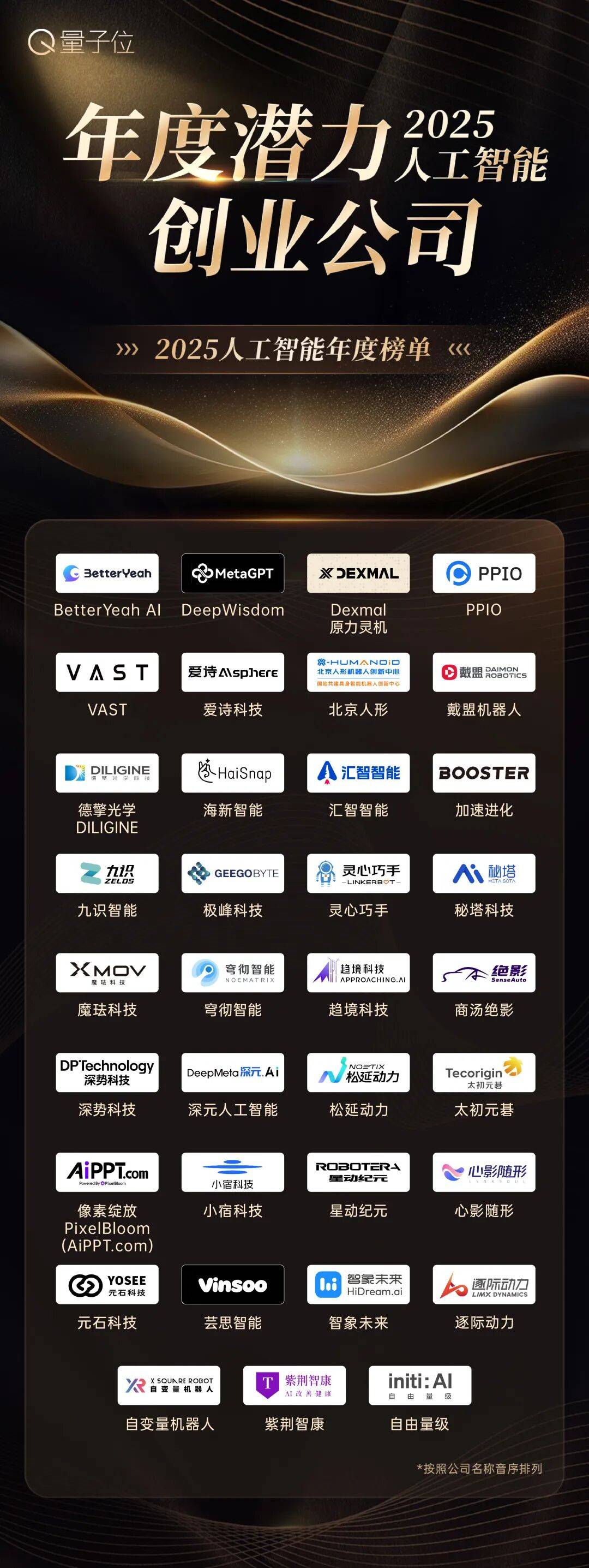 这份榜单中,有凭借硬核技术与自研基础模型脱颖而出的新锐力量,有踩准前沿方向快速突围的黑马团队,也有深扎垂直场景、在一个细分领域把AI能力发挥到极致的隐形冠军。