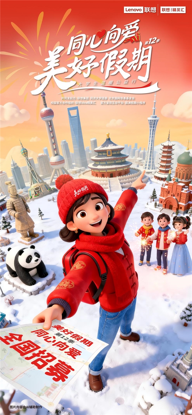 在走过六年十一季的温暖旅程后,联想“美好假期”大学生温暖公益行翻开了崭新的一页。12月10日,随着第十二季招募海报正式发布,这场汇聚爱与科技的公益接力赛全面启动。