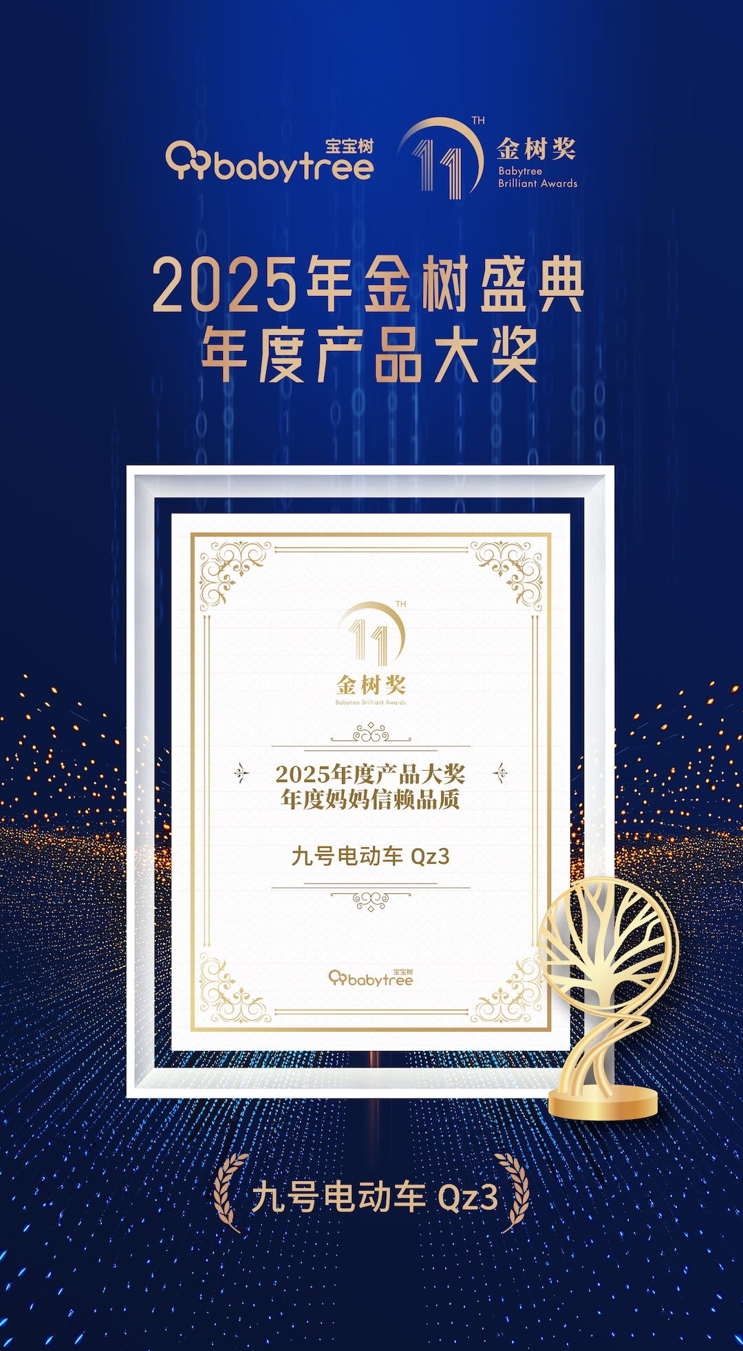 近日,在备受行业关注的2025年金树盛典上,九号电动 Q3 系列凭借其出色的产品实力和深刻洞察用户需求,从众多优秀作品中脱颖而出,斩获“年度妈妈信赖品质”大奖。