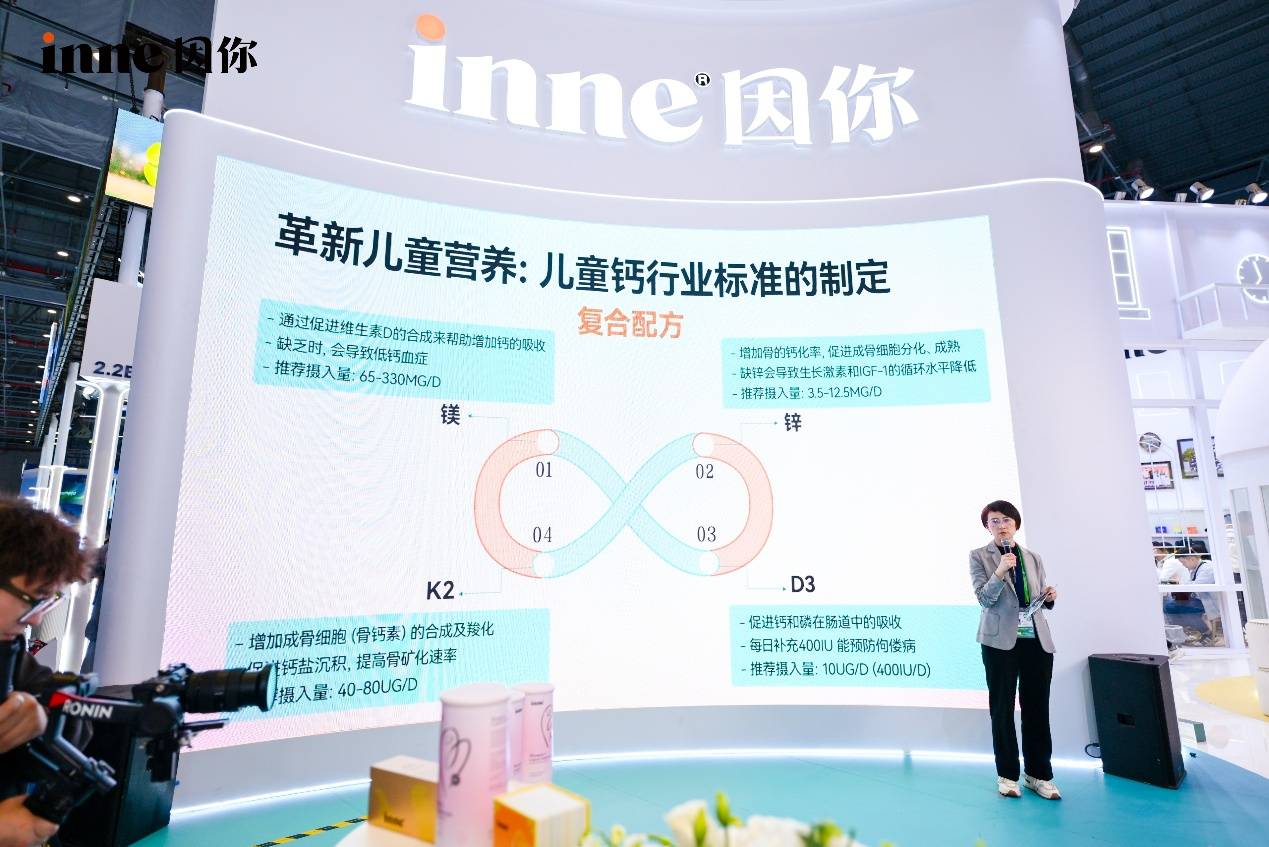 为推动儿童营养行业规范化与专业化发展,inne因你在本届进博会上携手京东健康共同发布《儿童钙品质质量标准》。该标准以“临床实证”为核心依据,从钙源、剂型、配方及分龄适配等多维度建立起严谨框架,旨在为消费者树立清晰的行业品质标杆,提供科学的选钙依据。