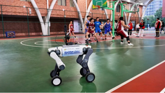 2025学术节期间,引起围观的机器人不只一位。期间举办的一场校园篮球赛上,一只机器狗化身“校园小记者”,背着摄像设备,沿着篮球场边线灵活穿梭。