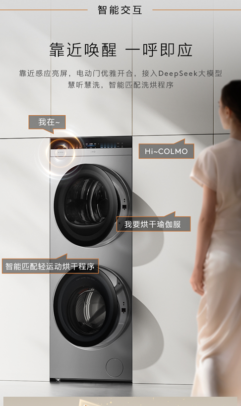 真正的智能,是感知而非指令,是服务而非负担。COLMO所构建的智能交互,如同一位隐形的管家,时刻待命,却从不打扰。当您抱着衣物走近,屏幕靠近感应亮起,电动门优雅开合;将衣物放入后,AI洗烘系统以精准称重感知负载,给予衣物量身定制般的呵护。融入DeepSeek大模型,更添一份心领神会。比如您只需说“hi,COLMO,我要烘干瑜伽服”,它就能智能匹配轻运动烘干程序。这种“靠近唤醒,一呼即应”的体验,让高端科技化为一种无需言说的默契与便捷。