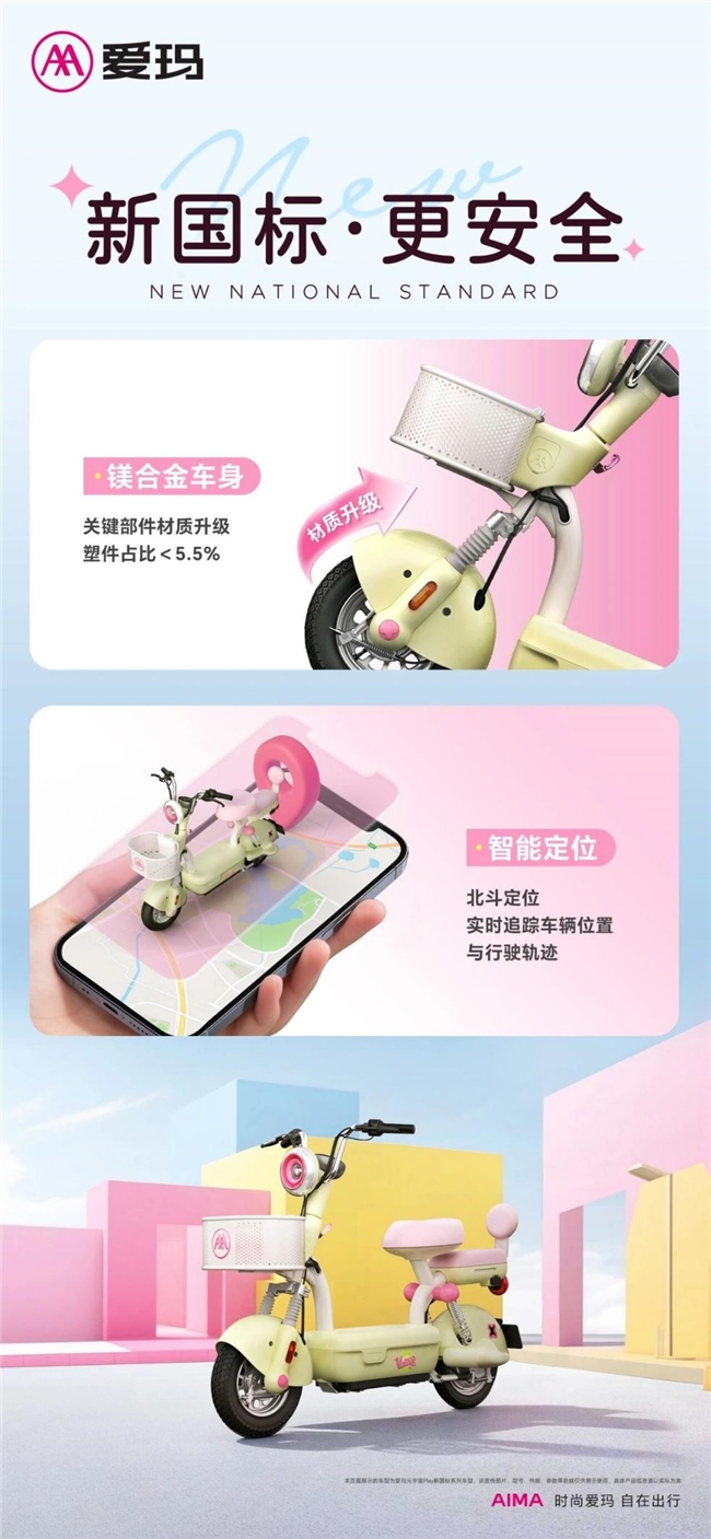 不仅如此,行业标准往往包含前瞻性技术要求,能推动企业研发投入,从而挖掘用户未被满足的潜在需求。在新国标提出的“北斗定位 + 动态安全监测”要求基础上,新国标爱玛元宇宙play智能配置再升级,新增北斗定位功能可实时监测车辆动态,不仅满足了监管的溯源需求,更精准匹配了城市用户防盗等场景需求,实现了对场景需求的深度挖掘。