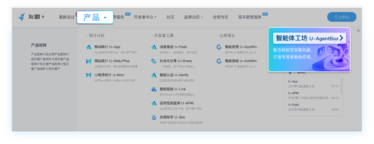(蚂蚁百宝箱与友盟宣推出面向开发者的智能体开发与集成平台U-AgentBox)