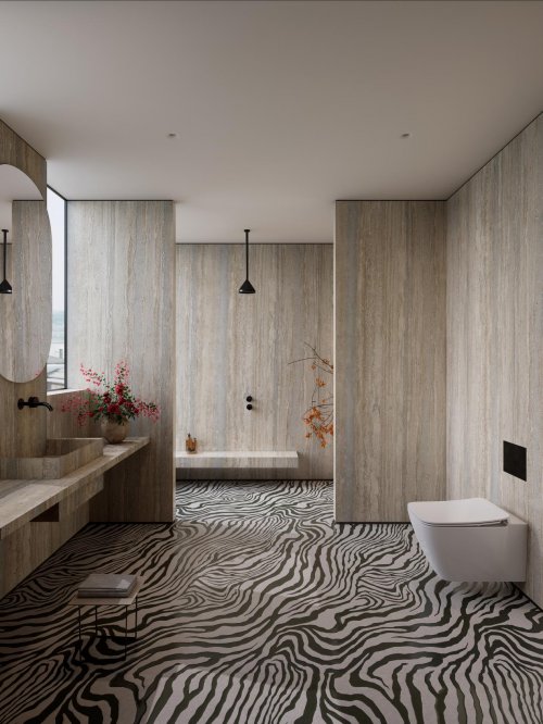马毛系列的柔光质感与自然纹理,完美契合意式极简、现代轻奢等主流高端风格,能在“低调中彰显高级感”。部分特色瓷砖设计将自然肌理与人文情感深度融合,使天然纹理承载人文温度。