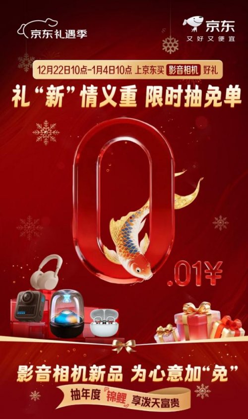 年末正是焕新视听装备的好时机,京东“影音相机礼遇季”携手多款影音、相机及智能新品,推出“0.01元抽限时免单”重磅福利。即日起至1月4日10点,上京东搜索“影音抽免单”,可参与影音相机新品限时抽免单活动,Gopro MAX2、索尼1000XM6、哈曼卡顿琉璃5等多款人气产品仅需0.01元即有机会拿下。