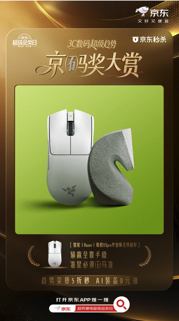 为让更多消费者感受3C数码趋势尖货的魅力,京东同步带来诸多福利。即日起,打开京东APP搜索“趋势潮电超级品类日”,即可直达活动专区,享受“趋势尖货5折秒杀”和“AI装备0元抽”的专属福利,以更优的价格拿下包括雷蛇毒蝰V3pro专业版在内的最新趋势3C数码装备,畅享前沿科技带来的沉浸式娱乐体验。