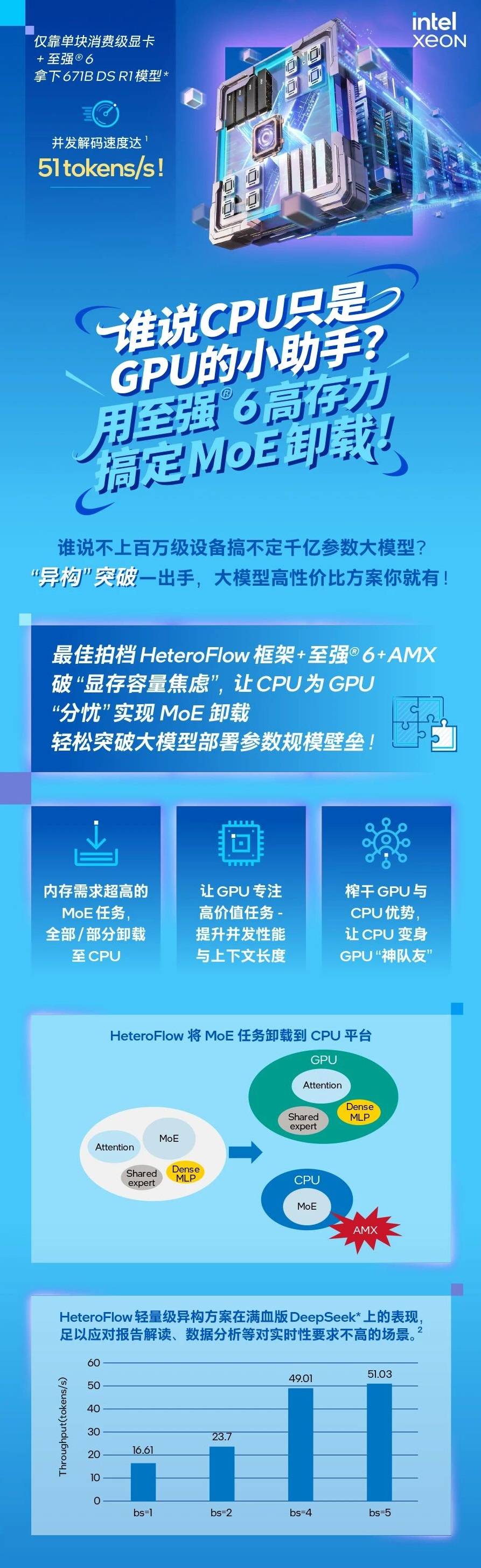 而现在,有了HeteroFlow框架的加持,如果你用的是MoE类大模型,且选择了英特尔的至强6性能核CPU来做机头处理器,那么恭喜你,破局方法来了!