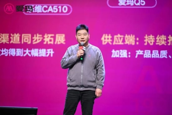 盛会现场,爱玛多位高管的演讲勾勒出厂商共赢的清晰路径。爱玛科技集团高级副总裁 国内事业部总裁李玉宝“聚力同行,赢战未来”的致辞,升华了战略体系核心,凝聚全员的战略共识,强调厂商拧成一股绳的命运共同体;国内事业部副总裁顾帅以“携手甘六载,共赴新‘钱’程”锚定销服体系升级,承诺用更完善的服务让伙伴无后顾之忧;国内事业部副总裁李鹏对爱玛的研发体系进行了全面规划,构建具有爱玛特色的产品竞争力,重塑旗舰产品,致胜高端市场,推动爱玛实现“面子与里子合一,将红海转变为蓝海”的目标;国内市场业务管理中心总经理陶峰“科学谋划 精准致胜”的分享,拆解了营销体系的精细化布局,为终端引流赋能;