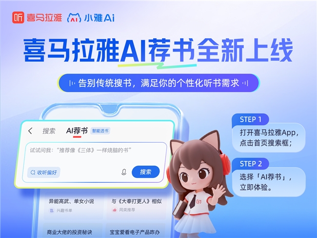 即日起,打开喜马拉雅App,在首页点击搜索框,选择“AI荐书”,即可开启智能荐书新体验。