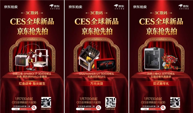 同日竞拍成功的还有三组精心搭配的“生产力+收藏品”套装。创想三维SPARKX i7 3D打印机与乐高钢铁侠Mark3收藏版、SNAPMAKER U1 3D打印机与乐高法拉利SP3、创想三维K2 3D打印机搭配五福迎春乐高套装火速竞拍成功,也体现出科技装备与文化IP的组合,正为拍卖活动注入新的活力。