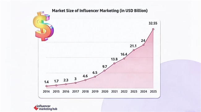 导语:AI浪潮驱动营销智能化转型,达人营销已成社交媒体广告增长核心引擎。据Influencer Marketing Hub报告,2025年全球达人营销市场规模将达325.5亿美元,十年复合增长率超33%,行业增长潜力显著。