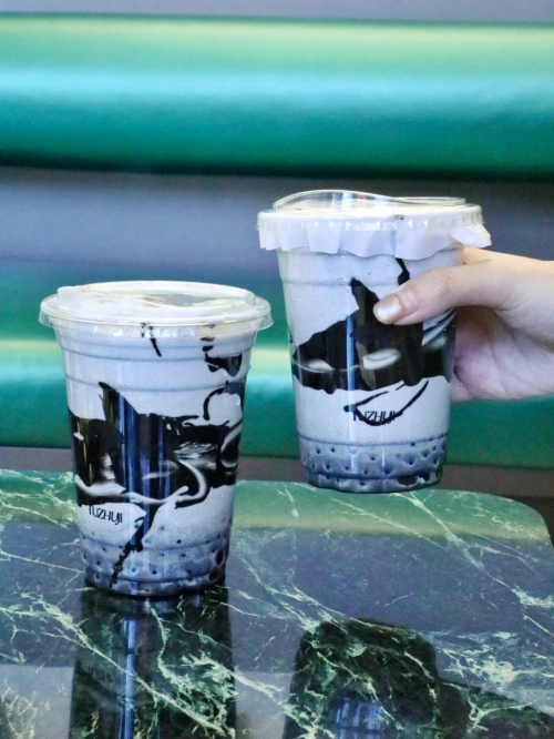 招牌「黑芝麻牛乳茶」料超足,里面有黑芝麻爆爆珠、黄精珍珠等丰富小料,咬开爆爆珠的瞬间,浓郁的芝麻香瞬间在口腔散开,牛乳的醇厚与芝麻的香气完美交融,每一口都是满满的幸福感。
