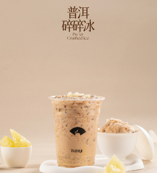 冠军同款「普洱碎碎冰」入口先是细腻绵密的冰沙口感,牛乳的醇厚香甜与普洱茶香碰撞交融,口感更加丝滑顺口,里面还加入了青柚果肉,果香与茶香、奶香交织,清新不腻,让人一口接一口根本停不下来。
