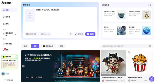 1.低门槛的造物工具:「造好物」通过自研工具链,将原本属于专业建模师的工业级能力“封装”给普通创作者。用户无需学习复杂的工程软件,即可实现从“Prompt/Image”到“生产级 3D 模型”的直出。彻底解放了插画师、艺术生的“审美力”,使其成为第一生产力。