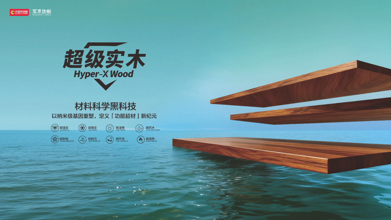 据悉,技术层面的突破,让超级实木具备颠覆式的“8 超”性能,即超强度:堪比钛合金的承重与抗冲击的双重保障;超稳定:告别变形开裂的烦恼;超温暖:地暖环境绝配的超级材料;超防水:从“亲水”到“厌水”的本质改变;超耐候:全天候对抗时光流逝的色彩与结构稳定性;超耐污:抗污、防霉、无异味;超环保:从源头杜绝有害物;超阻燃:重新定义木材的防火安全等级。