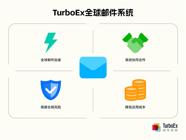 TurboEx出海级电子邮件解决方案从跨国分布式邮件系统部署架构、可信邮件中继投递通道覆盖全球、邮件端对端加密传输技术、DLP邮件数据防泄漏服务等核心技术帮助企业出海中的各种电子邮件应用场景要求可精准完善落地,良好支撑了出海企业的全球高速安全通信需求。