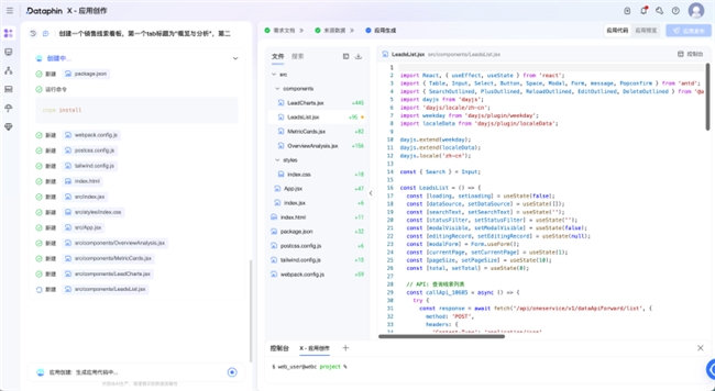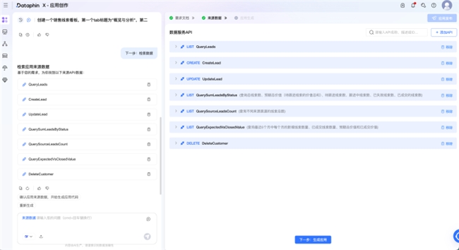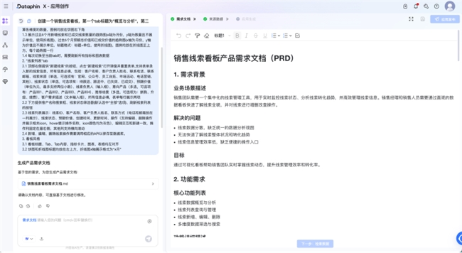 业务部门期望结合大模型的能力,面向一些轻量化业务场景快速开发小型应用,将Dataphin内的数据提供给“业务应用”,例如:搭建客户线索看板、需求管理看板等轻量化数据应用;