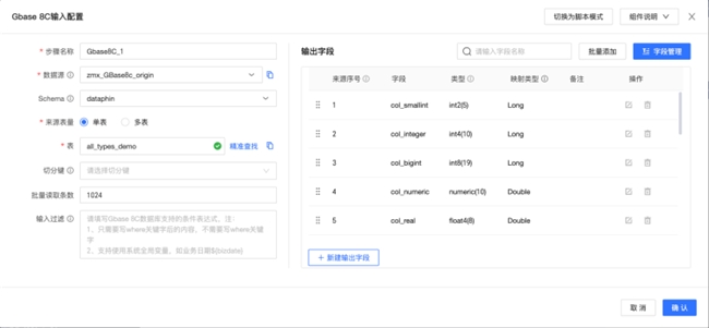 离线集成输入/输出组件、整库迁移来源端支持 GBase 8c