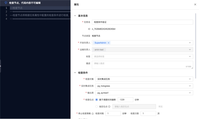 新增检查节点:可检测实时集成任务产出表的消费位点,支持按调度时间偏移检查、按指定位点检查