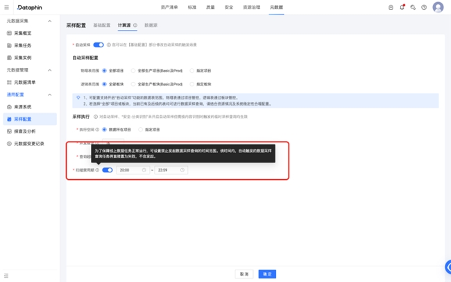 数据采样管理:支持统一配置“扫描禁用期”,灵活管控采样任务执行时段