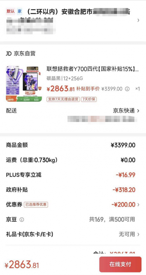 作为一名资深游戏玩家,沈先生对游戏的操控体验有着极高的要求。他表示,相比于大尺寸平板,小尺寸平板在握持手感与操作灵活性上更具天然优势,是长时间沉浸式竞技的最佳选择。沈先生对心仪已久的产品观望已久,而此次安徽省国补政策的全面推开,成为了他入手的“最佳契机”,安徽国补线上开启首日,他便第一时间在京东平台下单了联想拯救者Y700第四代电竞游戏AI平板。令沈先生惊喜的是,当天下午,这份新年礼物便已送达。这种“即买即享、到货即玩”的高效体验,让沈先生直呼远超预期。
