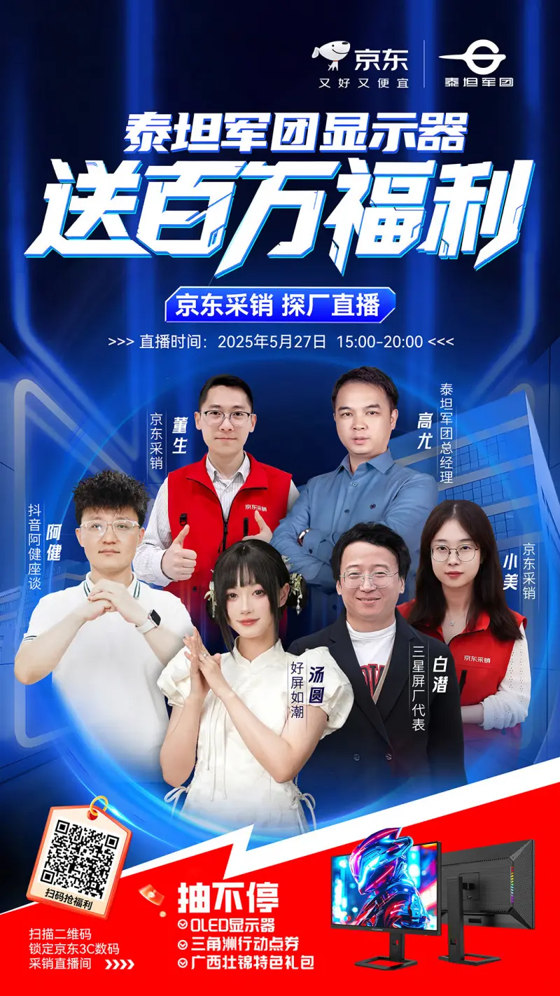 5月27日,一场别开生面的“京东3C数码采销探厂泰坦军团”直播在广西南宁落下帷幕。这场长达6小时的沉浸式直播,通过“工厂探秘+现场议价”的创新模式,向消费者全景展示了显示器制造的全链路流程,更凭借京东3C数码采销团队硬核“砍价”实力,为消费者带来了多款热门显示器的历史低价。整场直播累计发放了百万级福利,开创了品质工厂溯源与消费决策深度结合的行业直播新范式。