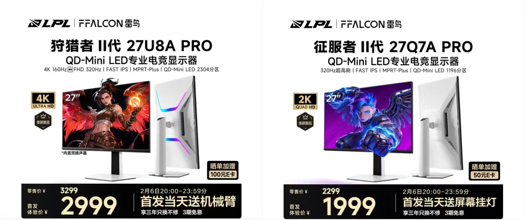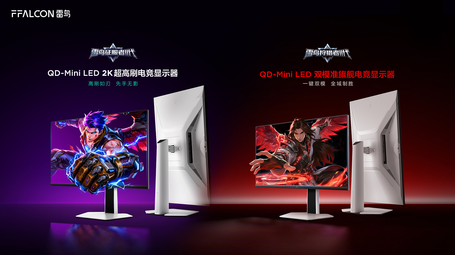 在此背景下,雷鸟显示器正式推出双线新品——狩猎者II代系列与征服者II代系列,以两种顶级QD-MiniLED解决方案,精准匹配不同玩家群体需求,重新定义次世代电竞画质标准。
