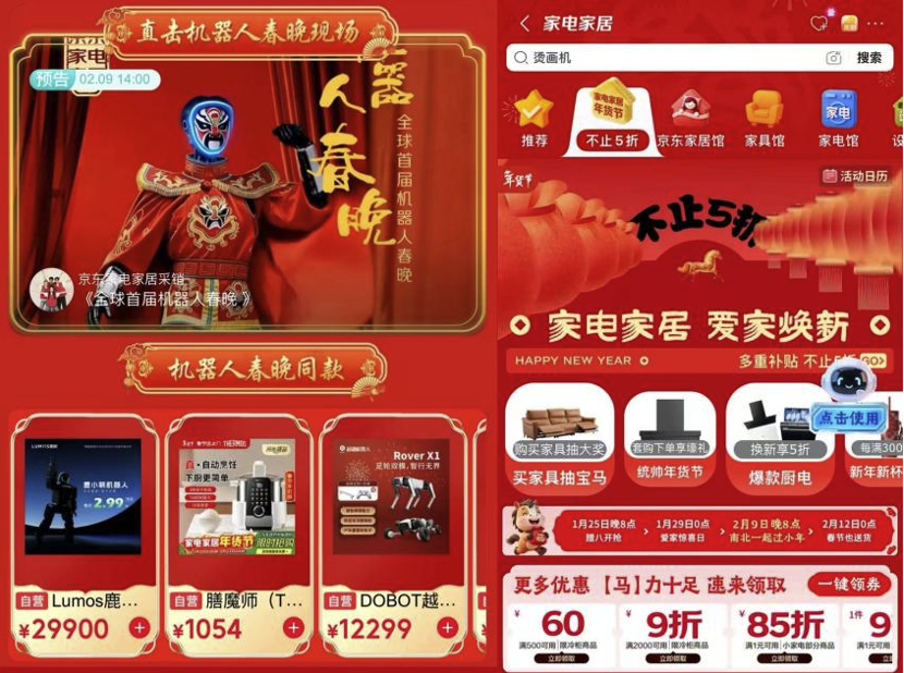 科技为翼,年味新生!2月9日19点,上京东搜索“机器人春晚”,一同见证这场全球首届机器人春晚的精彩时刻,感受科技带来的无限魅力,共同开启充满希望与惊喜的新一年。