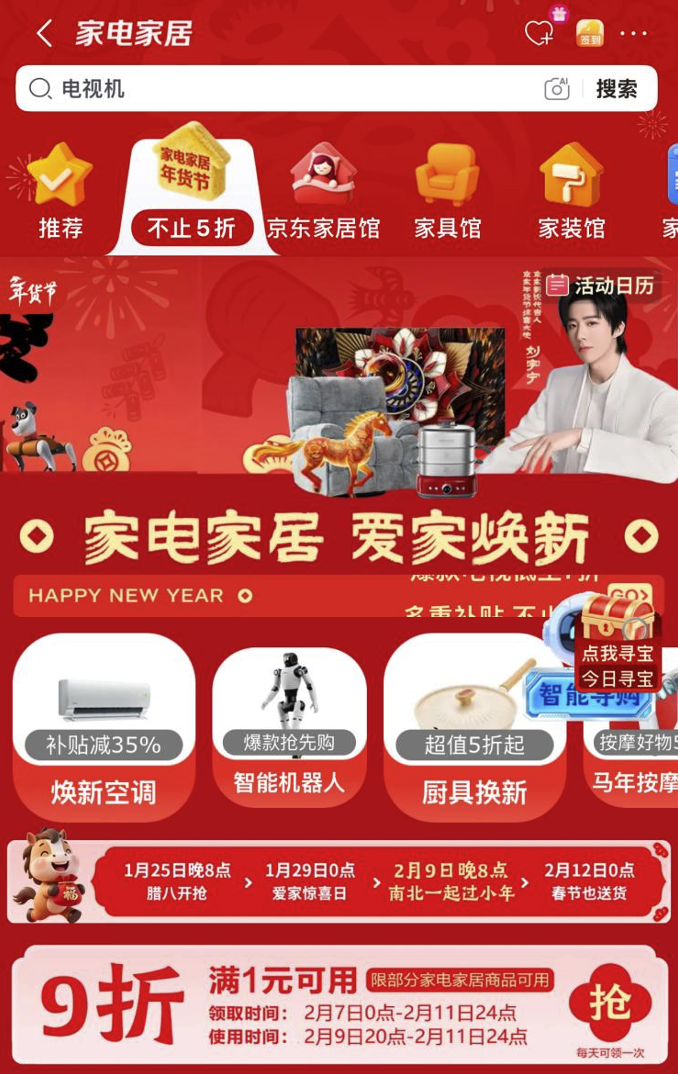 小年至,团圆近。无论是为一家人挑选焕新大家电,还是为家中添置暖心小物,现在打开京东APP搜索“家电家居年货节”,不仅能以超值价格入手心仪的家电家居好物,好家电还能快送快装,农村也能送到家,无论在哪都能安心购物。抓紧时间锁定心仪好物,为家换新颜,让每一份心意都稳妥抵达。