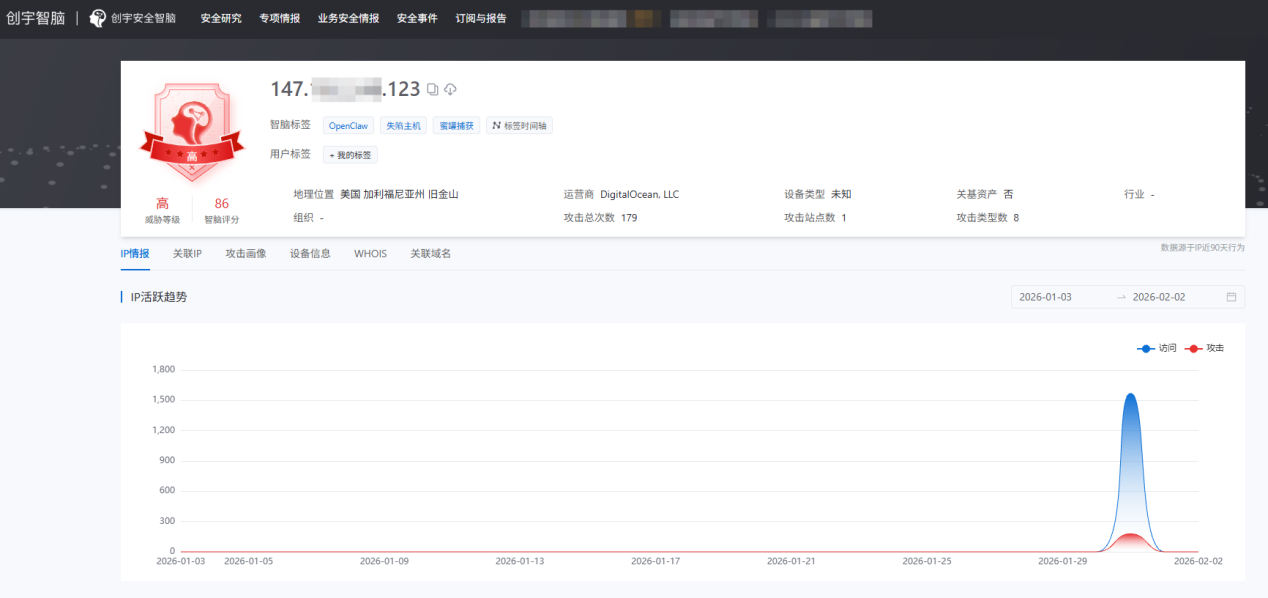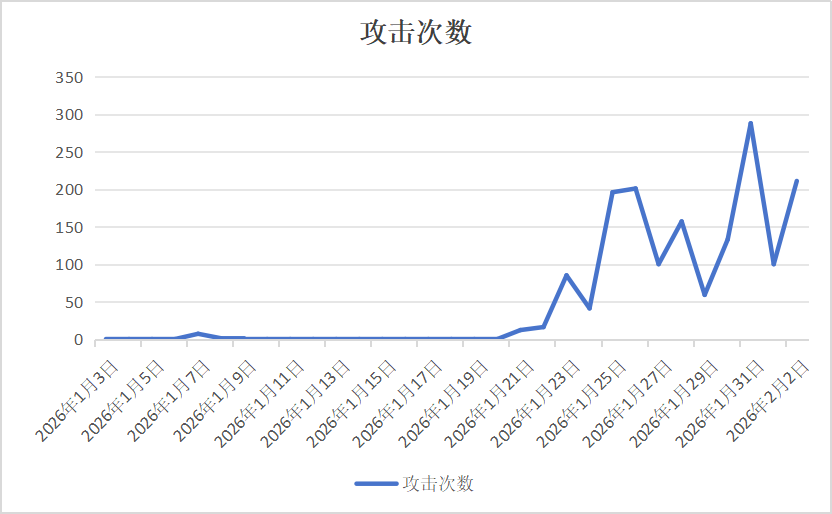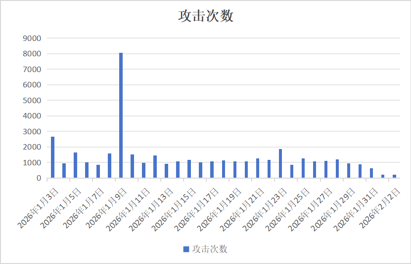 在 2026-01-03 至 2026-02-02 的近一个月统计周期内,这批异常 IP 的攻击情况总览如下。