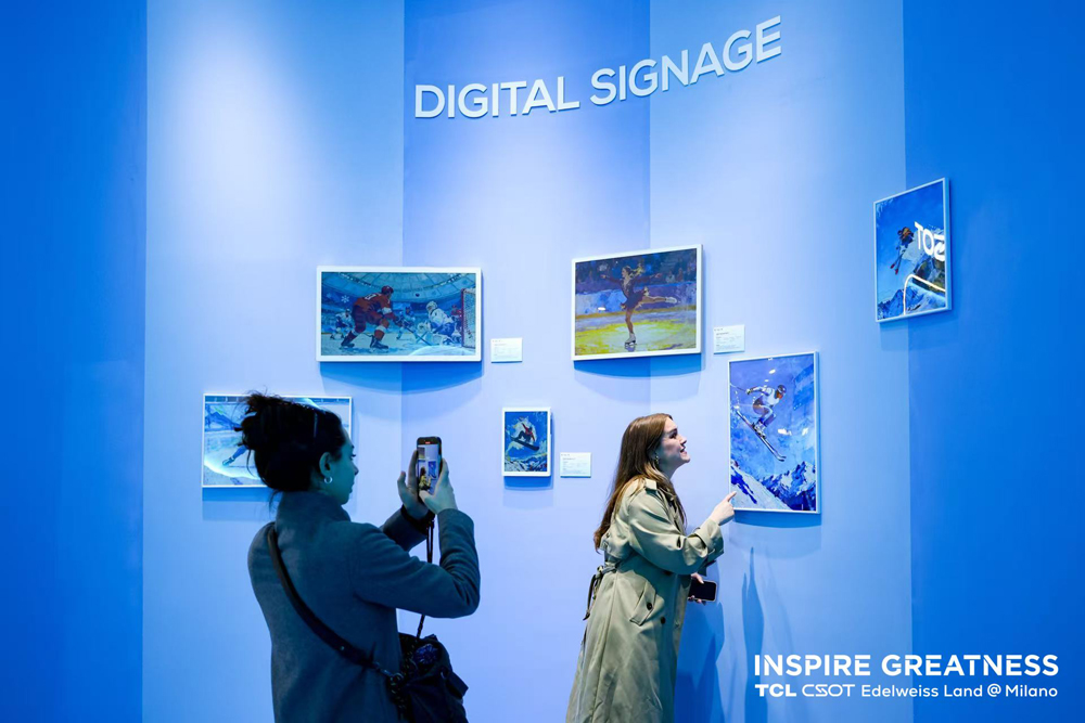 通过电子纸标牌显示(13.3")、电子纸标牌显示(28.5")、电子纸标牌显示(31.5")和超低功耗8:9艺术画屏显示(85")等低能耗显示产品,TCL华星持续拓展在赛事信息展示与公共空间中的实际应用价值。超低功耗8:9艺术画屏显示(85")采用IGZO背板技术与高穿透材料方案,并结合驱动降功耗算法及背光亮度增益技术,成功达成欧标A级能效,静态画面实现“3天仅需1度电”的惊人续航。