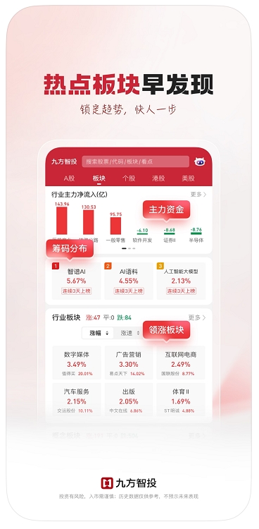 作为“新一代股票投资助手”,九方智投依托自研股票行情软件打造全周期投资决策支持平台,深度整合“工具+内容+服务”三大核心板块,构建从信息获取到决策执行的一站式投资生态,凭借智能化工具矩阵、专业投研生态及场景化陪伴服务三大核心优势,有望破解投资者决策效率、专业支撑、场景覆盖等痛点难题。