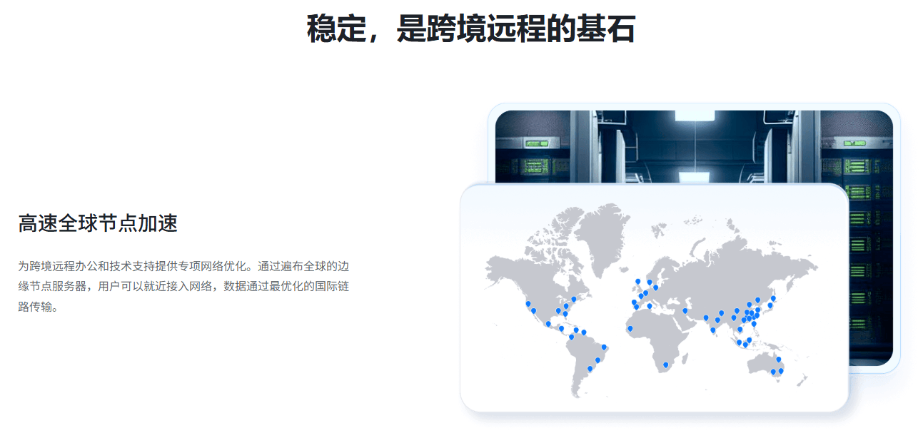 无论是整理年度报告、调整设计方案,还是协调团队排班,都能在指尖流畅完成。强大的全球节点支持,即便你身处异国他乡,也能享受低延迟、高稳定的跨系统、跨设备连接体验,让跨国办公与学习畅通无阻。