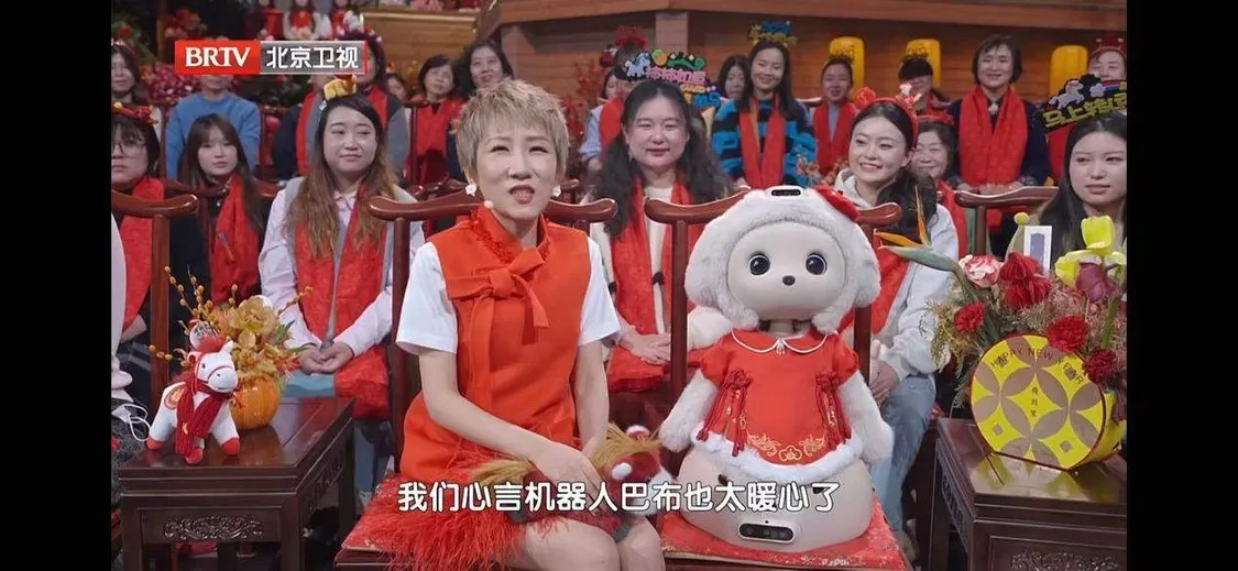 大年初一晚,2026北京台春晚的舞台下,穿着一身喜庆拜年服,圆润的白色身躯在喜剧演员张踩铃身旁和她“唠嗑”的机器人,就是心言集团今年重磅推出的国内首个家庭情感陪伴具身机器人“巴布”,他出现的几秒镜头引得无数网友直呼“第一次有了想把机器人抱回家的冲动”。心言机器人“巴布”的亮相,也标志着机器人产业正式驶入家庭陪伴的赛道。