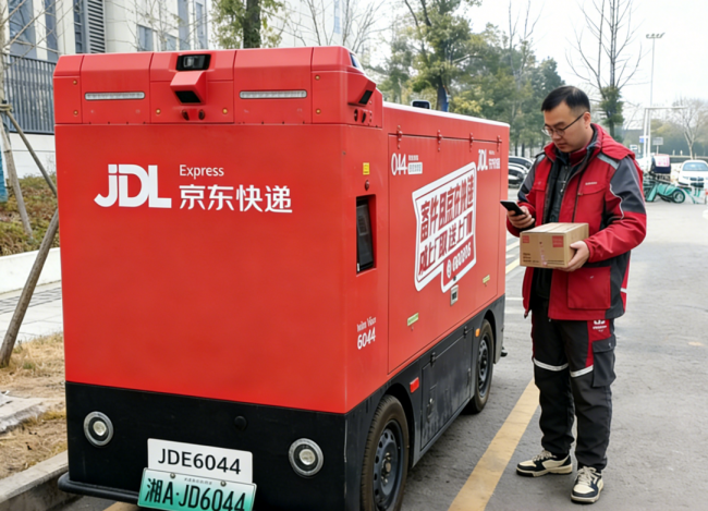 在末端配送环节,京东物流“独狼”第六代智能快递车承接接驳运输任务。这款具备L4级自动驾驶能力的无人车,凭借4立方米货箱容积与200公里续航能力,平稳将包裹从末端站点运输至方先生所在小区门口,全程自主避障、安全通行。