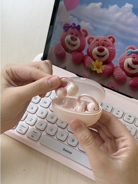 1. 佩戴革命:云朵气囊Pro技术,重新定义舒适采用倍思专利的云朵气囊Pro结构,精选0.5mm超薄亲肤硅胶,搭配创新的呼吸泄压设计,360°云感包裹耳甲腔,充盈度提升68%,弹性提升88%。单耳仅5g的轻盈机身配合0.5mm超细钛合金丝,历经5000次弯折测试不变形,完美适配不同耳型。无论是8小时通勤、全天办公还是剧烈运动,耳朵几乎“无感”,彻底告别传统耳机带来的胀痛与闷热,堪称“空气佩戴体验”。