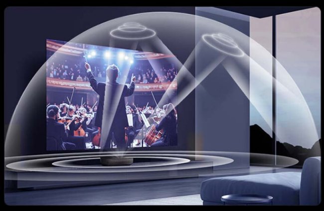 其次,在听觉维度,120寸版本配备帝瓦雷专业调校的2.1.2声道音响系统,包含独立低音炮、双天空声道与前出仿生蓝鲸腔。巴赫号角天空音垂直向上发声,经天花板反射营造三维声场;前出音直达人耳,杜绝声画不同步。配合Dolby Atmos与DTS-HD双解码,真正实现“声音从画面中来”的影院级包裹感——这是任何背部出音的超薄液晶电视难以企及的。
