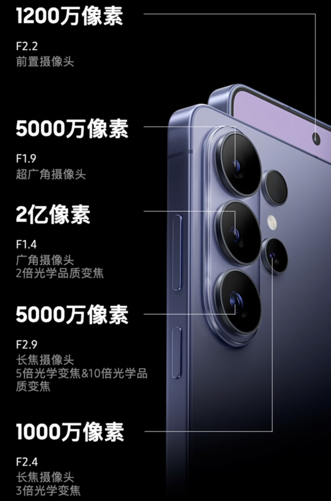 三星Galaxy S26 Ultra搭载1200万像素前置摄像头,后置5000万像素超广角摄像头、2亿像素广角摄像头、5000万像素长焦摄像头、1000万像素长焦摄像头;搭载超视觉引擎,焕新升级超清超亮影像系统,拍摄能力提升;支持AI赋能的空间变焦功能,支持1倍到100倍焦段;2亿像素广角摄像头带来丰富、清晰的画面细节。