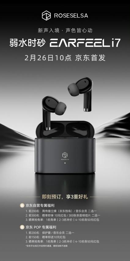 京东重磅首发EarFeel i7期间,同步为用户准备了多重新品权益。新品发售期间前3000名下单用户可享20元红包福利,前200名下单更有机会加赠周传雄周边或音乐会员月卡等惊喜好礼,参与晒单分享的用户还可额外获得现金红包或品牌明信片。与此同时,新品发售享受一年质保、7天无理由退换货及30天价保服务,让每一位用户都能安心体验旗舰音质带来的纯粹聆听享受。