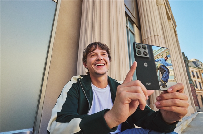 影像上,moto razr fold折叠屏AI手机配备由三颗5000万像素镜头组成的相机系统,并引用第三方评测结果称其在DXOMARK北美榜单中取得折叠屏相机系统领先成绩及Gold Label认证。