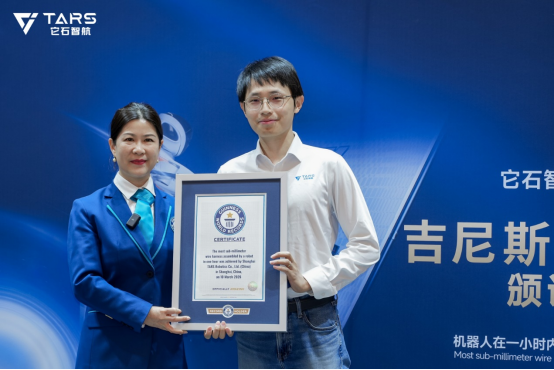 今日,它石智航首席科学家丁文超博代表它石接受吉尼斯世界纪录官方认证官所颁发的证书。他指出,具身智能的价值,不在于能表演什么,而在于能创造什么。这次成功获得吉尼斯世界纪录称号,代表着它石经受住了精度、稳定和泛化这三条具身智能最硬指标的极限验证,也是让具身智能加速走向实干的重要起点。