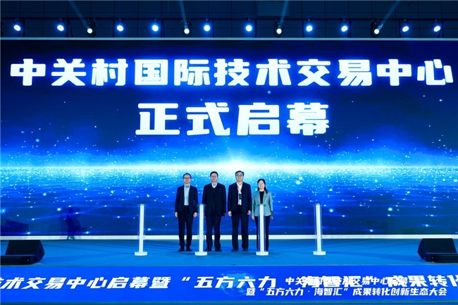 大会现场,李有平、许心超、杨璞、李妍共同按下启动装置,标志着中关村国际技术交易中心正式投入运营。