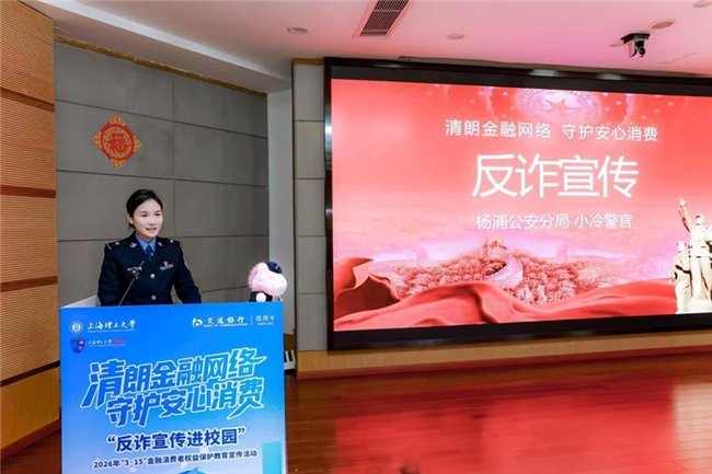 活动中,上海市公安局杨浦分局的“00后”民警小冷警官带来了一场硬核反诈讲座。他以网络热梗和幽默语言,将反诈知识转化为年轻人易记的“警”句,交行信用卡中心也借此机会,向在场学生传递了金融安全的重要性。小冷警官深度拆解了网恋交友诈骗、快递理赔诈骗等高发骗局,精准剖析了陷阱要害,交行信用卡中心鼓励学生们将这些要点融入日常,提升自我防护能力。