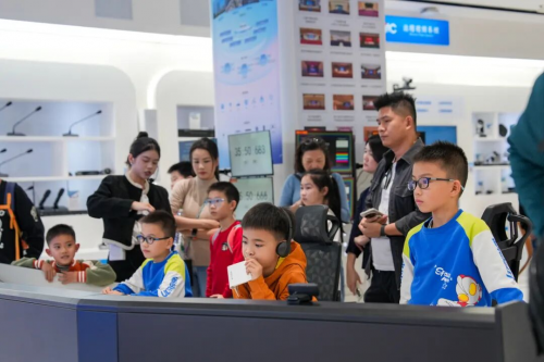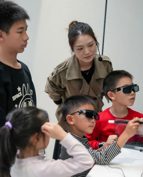 孩子们戴上VR眼镜,感受itc最新研发的AR/VR虚拟仿真教室解决方案。系统内置虚拟现实(Virtual Reality)和增强现实(Augmented Reality)技术,集成了传感器、计算机处理单元、显示屏和交互控制器等先进设备,搭配专业的3D视频资源,可有效增强互动体验和沉浸感效果,极大地提升孩子的学习兴趣。孩子们在体验中惊叹声此起彼伏:“哇塞,好神奇!”。这一刻,他们心中探索科学的种子悄然种下,对未来充满了无限的憧憬。